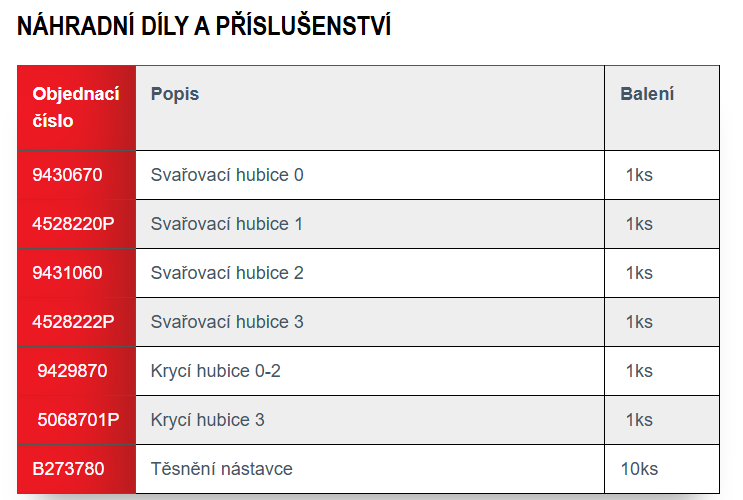 Svařovací nástavce, rukojeti