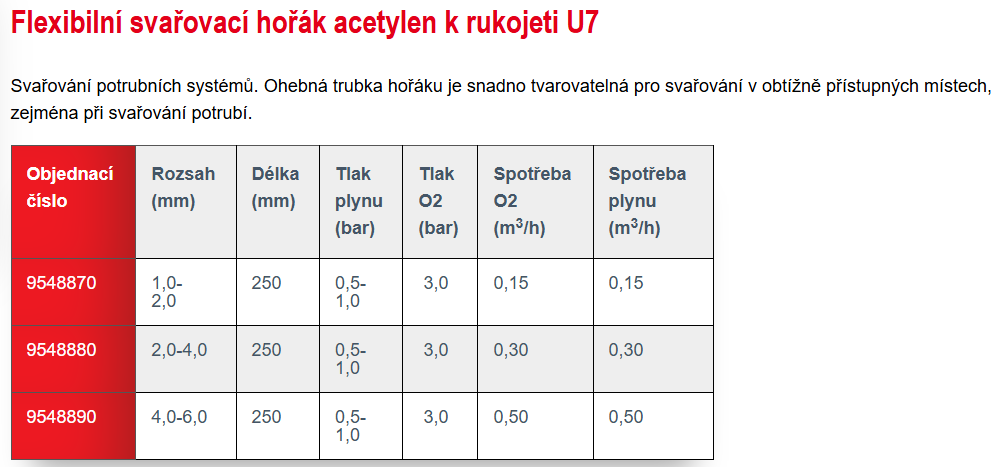 Flexibilní svařovací hořák č. 3 k rukojeti U7 s rozsahem 4,0 - 6,0 mm určený pro svařování potrubních systémů.