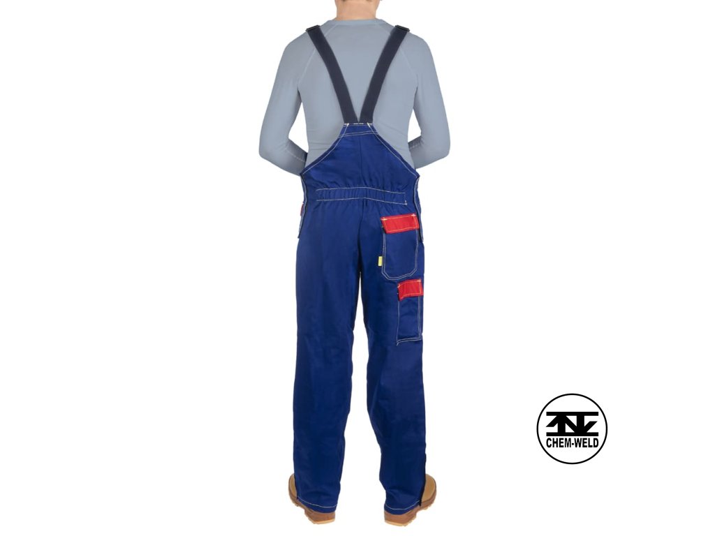 Ohnivzdorné bavlněné svářecí kalhoty s laclem a kapsami