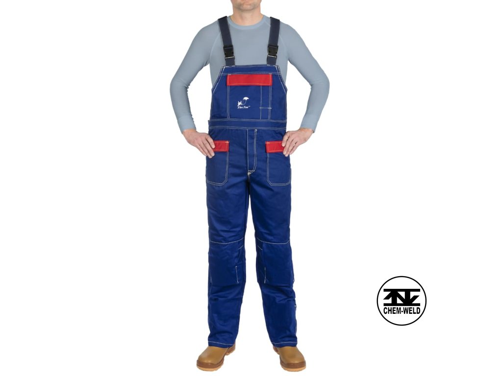 Ohnivzdorné bavlněné svářecí kalhoty s laclem a kapsami Fire Fox™